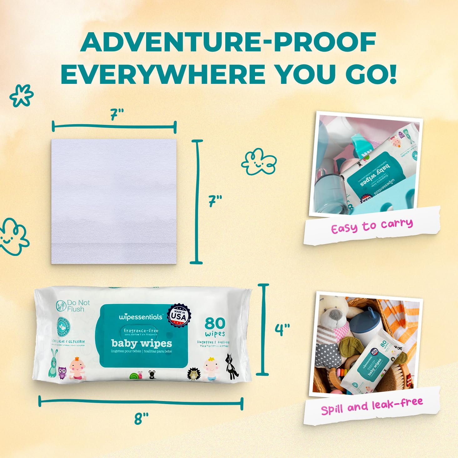 Unscented Baby Wipes 80ct in a peel and resealable pouch.
