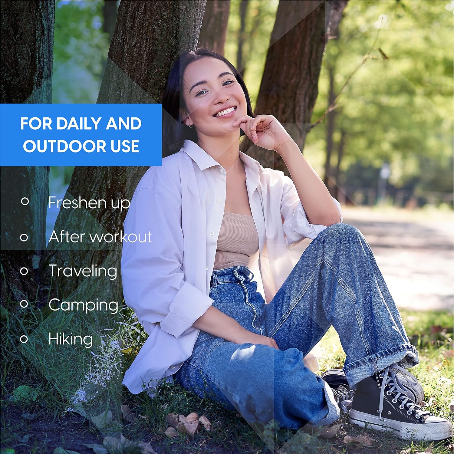Each 12"x9" wipe is specially formulated for the gentlest refreshing clean and is convenient to carry for any outdoor/indoor occasion.