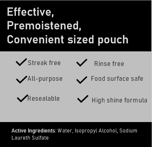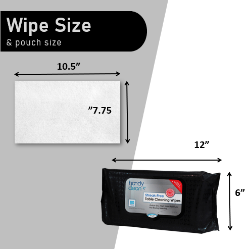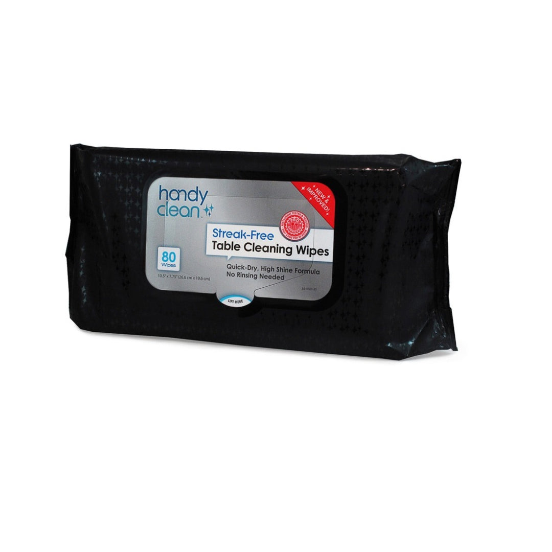 Handyclean Table Cleaning Wipes provide a superior, no-rinse cleaning performance in any environment. These all-purpose, pre-moistened wipes work wonders for fast and easy streak-free cleaning of dining tables, bar tops, countertops, high chairs, booster seats, window glass, mirrors and more!