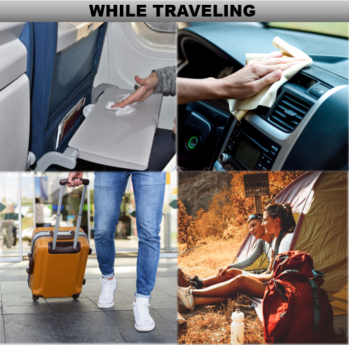 Always test on an inconspicuous area for compatibility. Use a fresh wipe to clean surface area. With heavily soiled surfaces, repeat with a second clean wipe to remove any residue. Discard used wipe in trash. Do not flush. Not recommended for use on painted or clear plastic surfaces, computer screens or electronic equipment. Not for use on surfaces that are hot to the touch. For best results, seal label tightly after use to retain freshness. DO NOT USE FOR PERSONAL HYGIENE OR AS A BABY WIPE. |