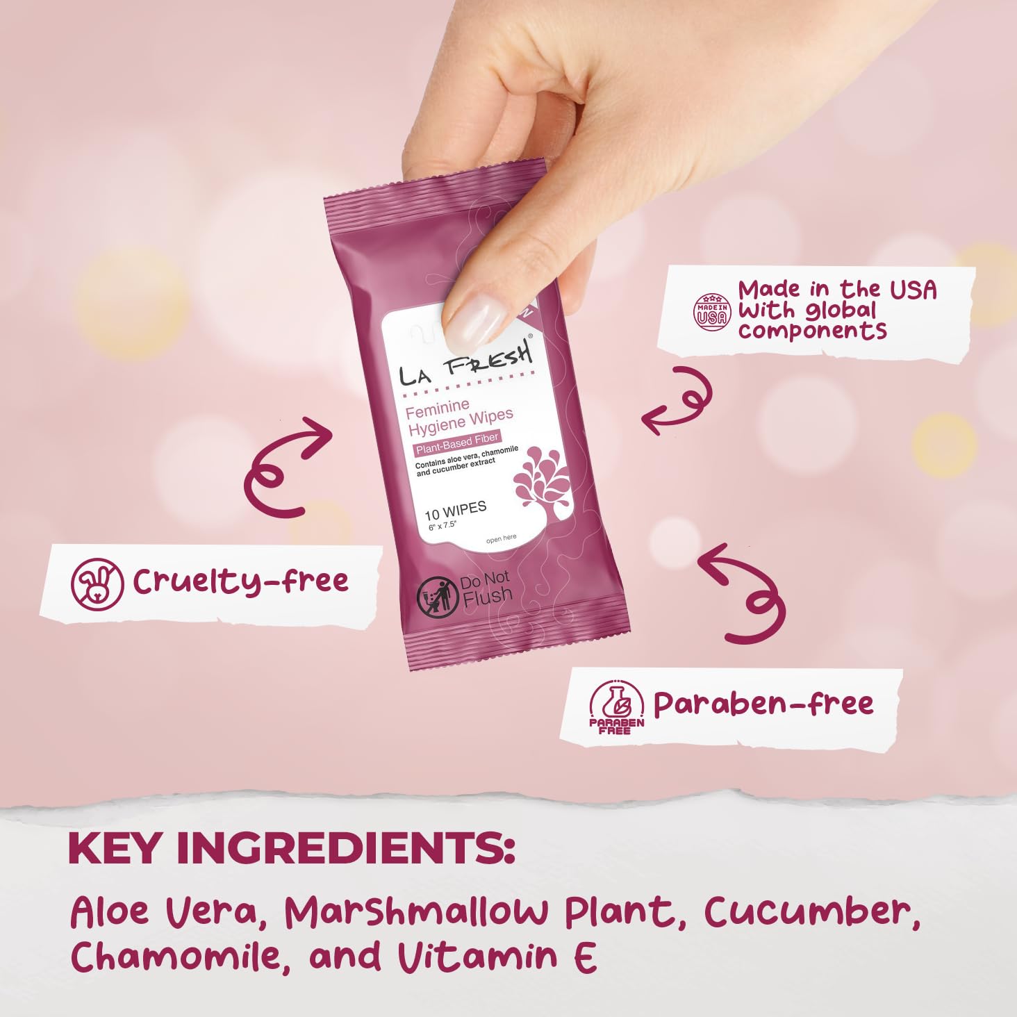 - Refreshes down there - Feel revitalized with LA Fresh feminine wipes for women. Our intimate wipes boost confidence, fight bad smells and itchiness with aloe vera, chamomile, and cucumber extracts.