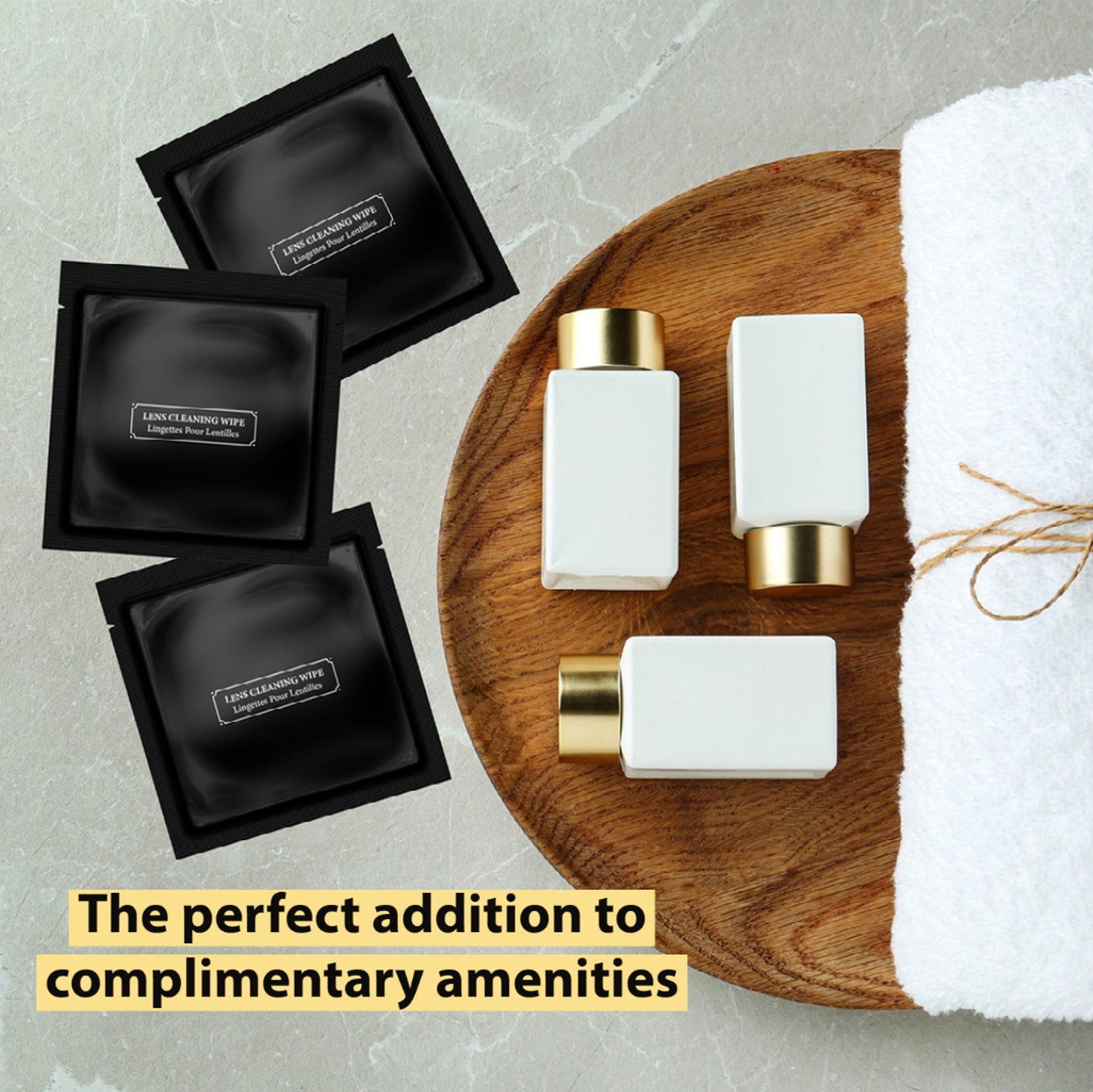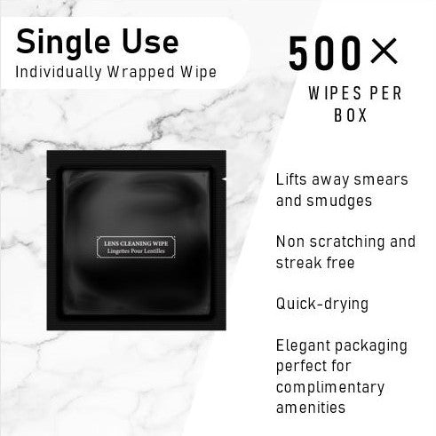The best of your rooms deserves equally great amenities. American-made, improved sustainability, and effortlessly functional efficacy. These Lens Cleaning Wipes easily lift away smears & Smudges for squeaky clean. Fingerprints? No Problem.