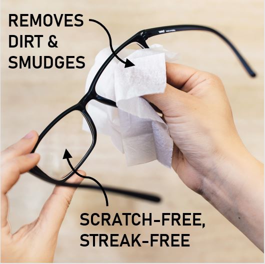 | Directions | Open packet and unfold wipe. Gently clean your lenses. Discard used wipe in trash. Please do not flush. |
